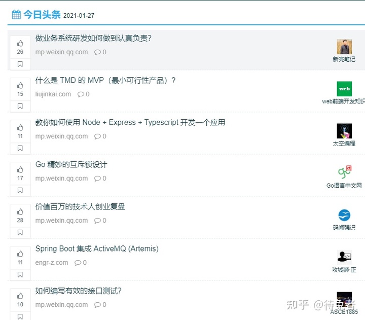 開發者今日頭條也是近兩年才開始活躍的技術分享平臺。它是由一群程序員創建的。我對它的第一印象是Code ,它是專門為程序員設計的IT技術。每周。平臺每周都會挑選一周的IT科技干貨推送。不久前,當我發現我的一些獨立博客的流量來自這個網站時,我發現了它。目前,開發者今日頭條已經聚集了一批科技愛好者。