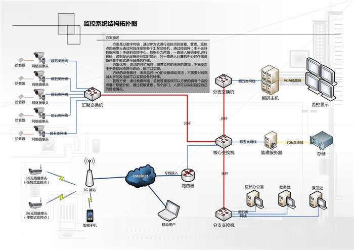 報警功能:系統對各個監控點進行布防,避免人為損壞。當破壞發生時,當場發出報警信號,同時將報警信息傳送到監控中心,讓管理人員第一時間了解情況。